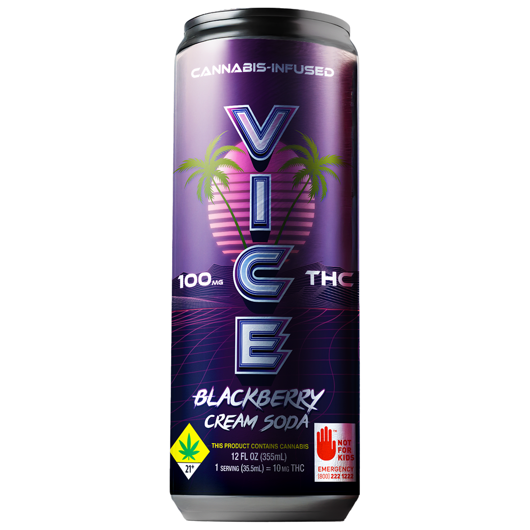 Vice | Blackberry Cream | 12 fl oz Soda | DOH | 100mg THC 100mg CBD 5mg CBN